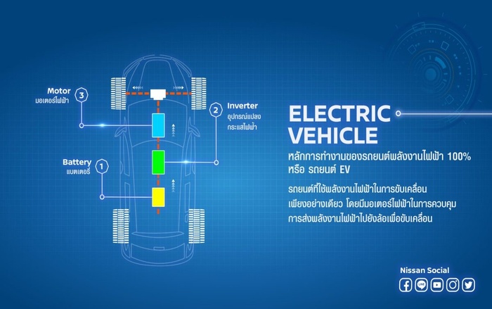 - รถ EV ขับเคลื่อนด้วยพลังงานไฟฟ้า 100% ไม่มีการใช้น้ำมัน